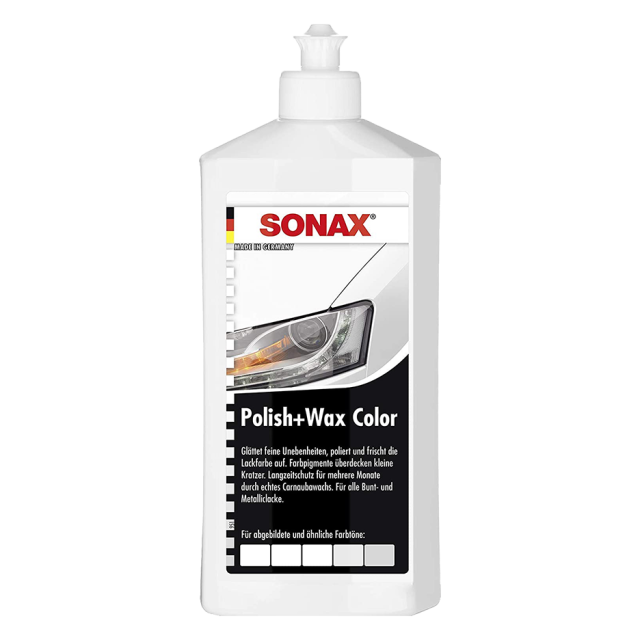 پولیش و واکس رنگی سفید سوناکس یک پوليش رنگی با واکس کارنابای طبيعی برای انواع رنگ های سفید استاندارد و متاليک است. رنگدانه های موجود در پولیش و واکس رنگی سفید سوناکس خط و خش های ريز را می پوشاند و باعث محافظت بلند مدت رنگ شده و به آن درخشش و براقيت فوق العاده ای می دهد. تميز کردن، پوليش و حفاظت رنگ با واکس در يک حرکت.