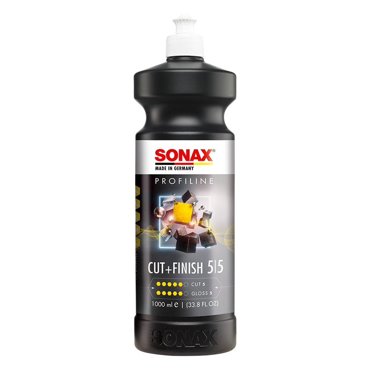 SONAX Cut & Finish براق کنندهای ابتکاری با اثر لایه برداری زیاد برای از بین بردن سریع نقاط معیوب مانند انسداد گرد و غبار ، اسپری بیش از حد رنگ، آثار سنباده در اثر ترمیم و ... است. از جمله حسنهای این کالا میتوان به سایش زیاد به همراه درخشش خوب و قابلیت اجرا برای مدت زمان طولانی اشاره کرد. کات اند فینیش سوناکس ایدهآل برای پرداخت سطح در یک مرحله میباشد. این محصول دارای قدرت لایه برداری p1500 بوده و بدون سیلیکون میباشد. اگر شما هم صاحب مرکز دیتیلینگ میباشید و بدنبال محصولی چندکاره هستید که در زمان و هزینه خود صرفه جویی کنید، پیشنهاد ما به شما استفاده از کات اند فینیش سوناکس میباشد. قدرت لایه برداری این محصول 5 از 6 و قدرت براقیت آن نیز 5 از 6 میباشد. از این پولیش سوناکس میتوانید به همراه پد زبر و یا متوسط استفاده کنید. این محصول بر پایه آب بوده و گرد و غبار از خود به جا نمیگذارد. این پولیش سوناکس عاری ازسیلیکون فیلر بوده و بر پایه آب است. پیشنهاد میشود از این پولیش به همراه دستگاه روتاری و پد پولیش زبر یا متوسط استفاده نمایید